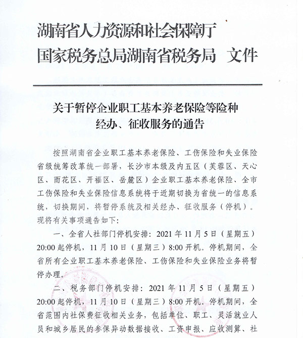 關于暫停企業(yè)職工基本養(yǎng)老保險等險種 經辦、征收服務的通告
