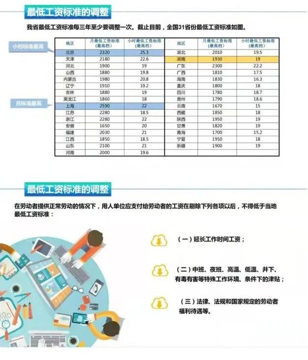 調(diào)整后我省月最低工資標(biāo)準(zhǔn)(適用于全日制勞動(dòng)者)分三個(gè)檔,分別為1930元/月、1740元/月、1550元/月;小時(shí)最低工資標(biāo)準(zhǔn)(適用于非全日制勞動(dòng)者)也相應(yīng)設(shè)三個(gè)檔,分別為19元、17元、15元。