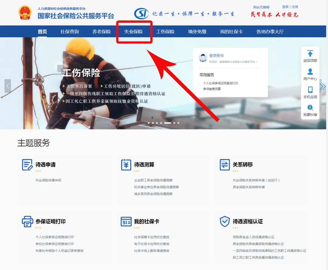 3、登錄“國家社會保險公共服務平臺”(http://si.12333.gov.cn),點擊【失業(yè)保險】→【失業(yè)保險待遇申領】→【失業(yè)保險金網上申領】辦理。