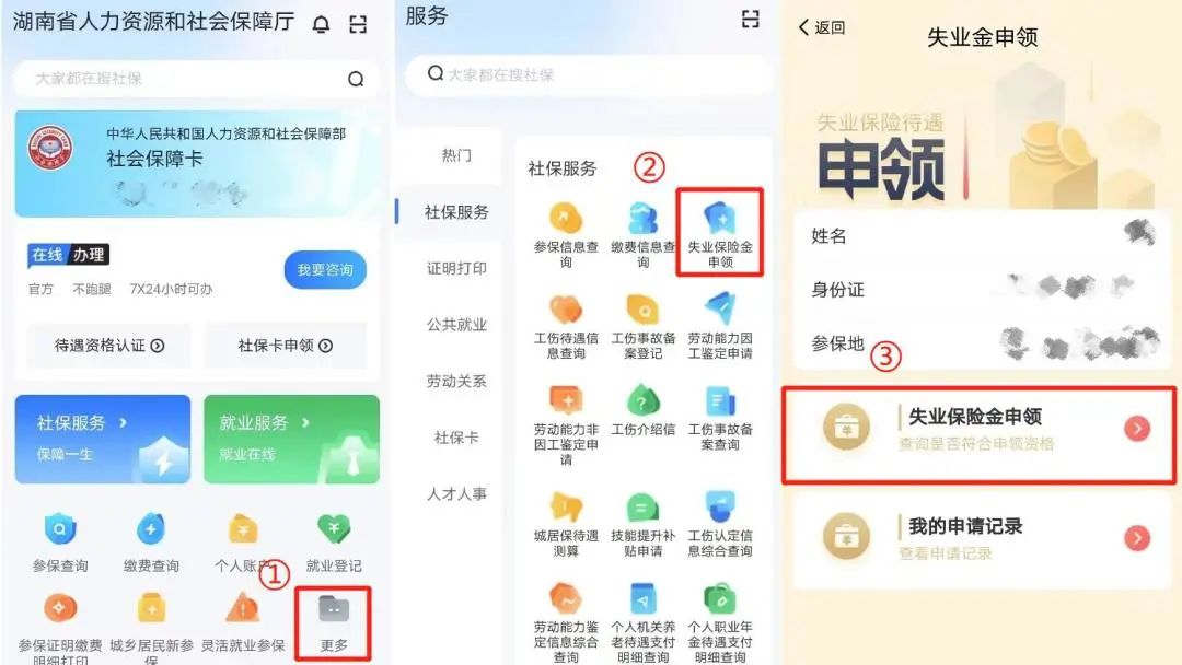 主要在“智慧人社”手機APP、“湖南人社”“智慧人社”微信公眾號、“國家社會保險公共服務平臺”(http://si.12333.gov.cn)等平臺,進行手機或網上申領。